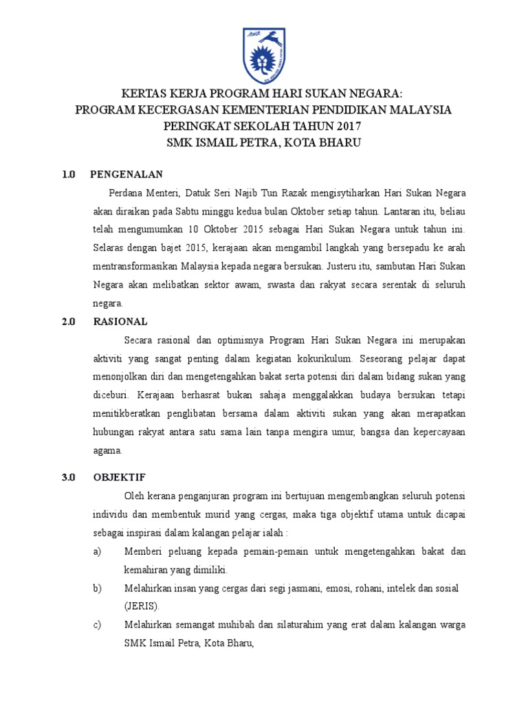 Kertas kerja hari sukan negara 2015 kertas kerja hari sukan negara 2020 norma baharu sumber pendidikan laporan hari sukan negara peringkat sekolah sk skarok 2016 nama sekolah sk skarok lubok antu cute766. KERTAS KERJA PROGRAM SUKAN NEGARA PERINGKAT SEKOLAH. Kertas kerja lawatan sambil belajar kursus stqp2513 ke bank negara malaysia sesi 20142015 pusat pengajian sains dan matematik universiti kebangsaan malaysia tarikh jumaat tempat bank negara malaysia Najib bin tun haji abdul razak perdana menteri malaysia pada 24hb mac 2015.