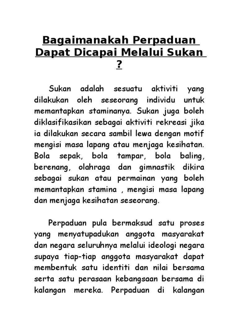 Bagaimanakah Perpaduan Dapat Dicapai Melalui Sukan Esei Sej Folio 2011 Pdf
